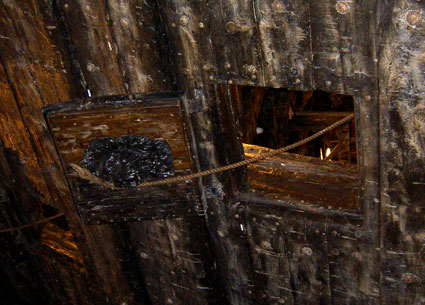 The inside of the gun port door were decorated with painted lion masks, which were meant to glare out at the enemy when opened. |