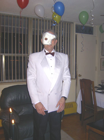 I convinced Izak to wear his white tux jacket, a stunning addition to his 'Phantom of the Opera' mask. |